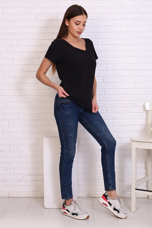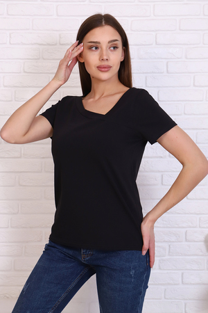 Стильная футболка из кулирки с лайкрой качества пенье, мягкая, приятная к телу. Модель свободного кроя, втачной короткий рукав, фигурный вырез горловины придаёт изделию особенную изюминку. Футболка - это базовая комфортная вещь женского гардероба, очень практичная и удобная, не сковывает движения, позволяет женщине всегда оставаться уникальной.