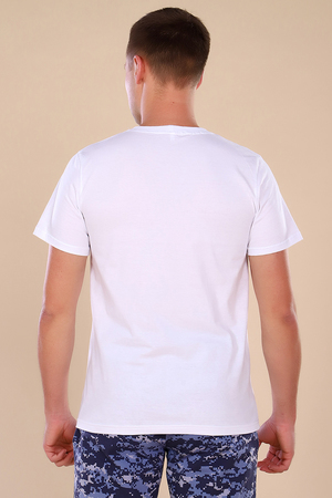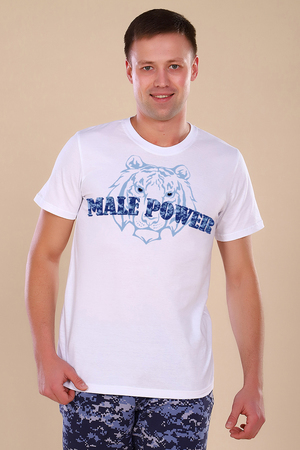 Мужская футболка с коротким рукавом. Данная модель выполнена из трикотажного полотна кулирка (хлопок 100%). Горловина обработана эластичным трикотажным полотном рибана с лайкрой. На полочке присутствует принт. Отлично подходит для прогулок и отдыха. Можно составить костюм с шортами 15260