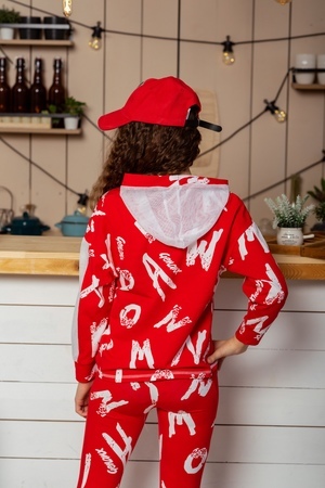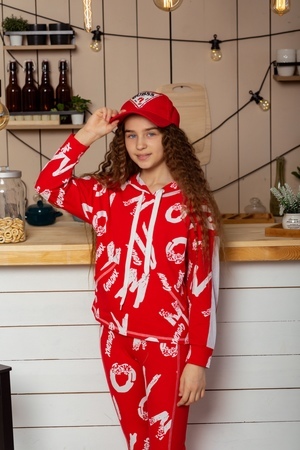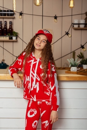 Толстовка прямая, свободная, с капюшоном, с удлиненной спинкой. Рукав длинный, с лампасом из сетки вдоль рукава, на манжете. На полочке расположен карман "кенгуру". Можно составить комплект с леггинсами 8231
