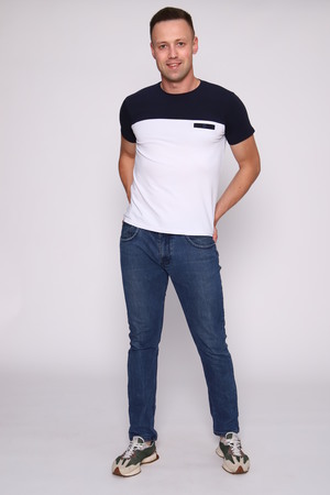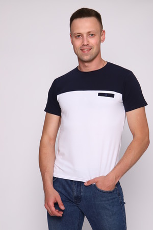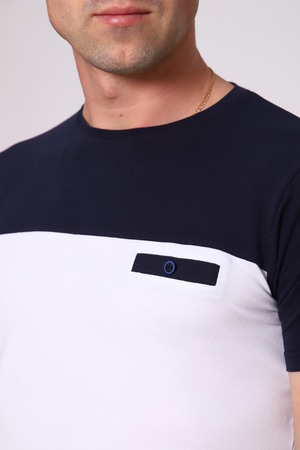 Стильная футболка с круглым воротником из тонкой износостойкой ткани кулирка с лайкрой - идеальный вариант для жаркой погоды. Стильная модель с карманом-обманкой. Простая базовая футболка придает стиль с помощью двух цветовых блоков. Приятный к телу трикотаж не скатывается и не даёт усадку.