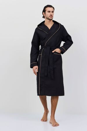 Вафельный халат с капюшоном. Рукав длинный. Накладные карманы. Размерный ряд от 44/46 до 64/66. Плотность вафельного полотна 242 гр. При первой стирке изделие дает небольшую усадку, это нужно учесть при выборе размера! Рекомендация по уходу и эксплуатации за изделием - бережная ручная стирка при температуре не более 30 С, без отжима! Для безупречного разглаживания складок и заломов изделие должно быть влажным.