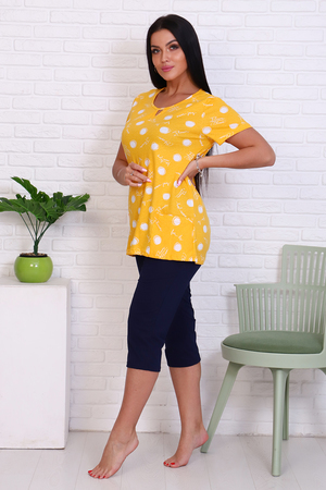Комплект женский. Футболка с втачным коротким рукавом, накладным карманом. Бриджи на резинке.