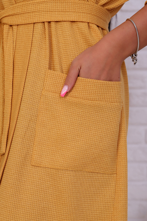Елена Петровна13.06.2023 в 13:08Халат не понравился. Взяла на размер больше. Пошив какой-то не суразный: вверху свободно, внизу заужено. На картинке цвет горчица выглядит поярче. Материал очень тонкий и сплошная синтетика. Единственное достоинство - длина рукавов
