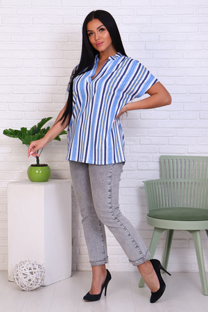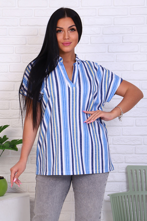 Туника женская прямого силуэта, спущенная линия плеча, воротник - стойка, V-образная горловина с планкой. Универсальный вариант для носки с любым низом.