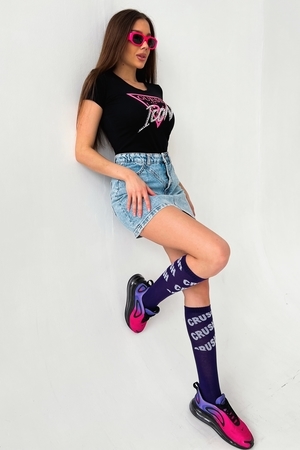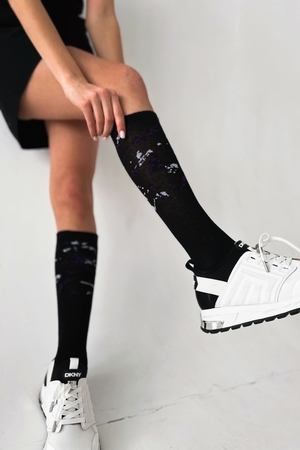 Ультрамодные женские гольфы из приятной мягкой хлопковой пряжи для стильного современного образа. Резинка не позволяет гольфам скатываться, но при этом не перетягивает ногу. Красиво смотрятся как с юбкой, так и с шортами, их можно надеть с кедами, кроссовками, ботинками на шнуровке или челси. Идеально подходят на каждый день, в качестве подарка, для ярких фотосессий в спортивном стиле