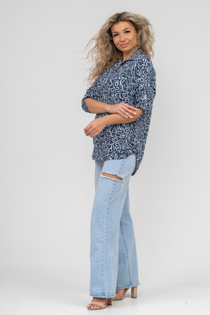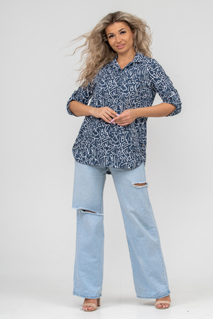 Женская туника свободного силуэта выполнена из 100% хлопчатобумажного полотна под джинс. Модель дополняет рубашечный воротник, паты на рукавах и по низу изделия, закреплённые декоративными пуговицами. Стильная и современная туника - рубашка будет универсальным видом одежды в гардеробе каждой женщины.
