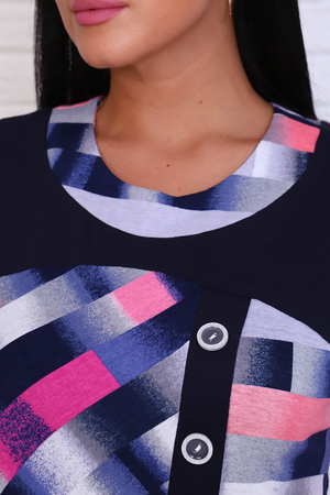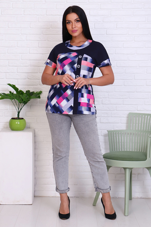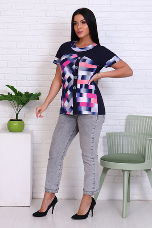 Футболка женская из кулирки. На полочке расположена кокетка из отделочной ткани. По центру полочки расположена планка. Рукав цельнокроенный спущенный. По низу рукавов притачен манжет.