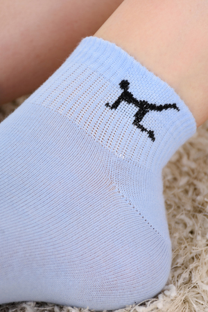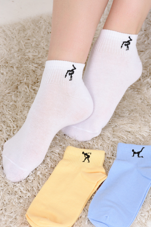Набор спортивных подростковых носков. В упаковке 3 пары, на резинке вывязан небольшой рисунок в виде спортсменов