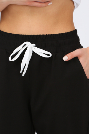 Женские брюки прямого кроя, пояс на резинке, внизу декоративные швы, карман с отрезным бочком. Отлично подойдут для женщин и девушек как домашние брюки, для занятий спортом, для прогулок.