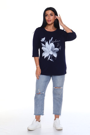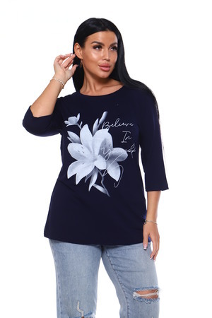 Футболка женская из вискозы. Украшена печатью, рукав 3/4.
