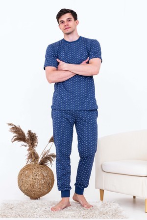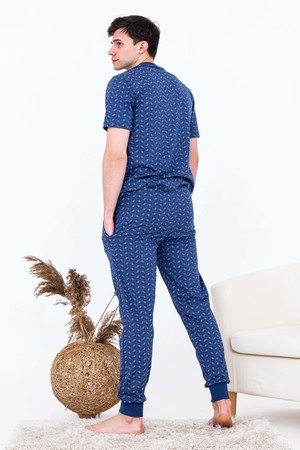 Костюм домашний из 100% хлопка. Очень уютный и удобный. Горловина и манжеты брюк выполнены из эластичной резинки-кашкорсе. Благодаря наличию лайкры в манжетах после стирки они не вытягиваются. Карманы в боковых швах брюк. Пояс на плотной резинке 2 см. Костюм можно с удовольствием носить на любимой даче.