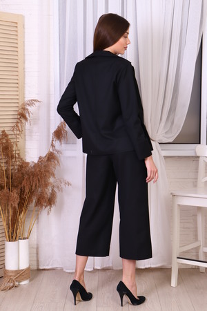 Костюм из легкой ткани с прямыми укороченными брюками пользуется большой популярностью среди женщин любого возраста. Прямой крой брюк подчеркнет достоинства и скроет возможные недостатки. Жакет с лацканами выполнен без подкладки, что позволит ему более мягко сесть по фигуре, а поясок подчеркнет талию.