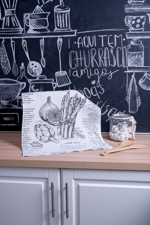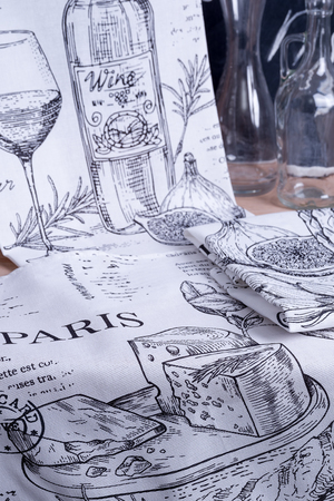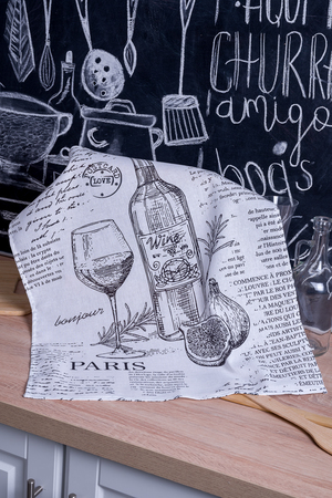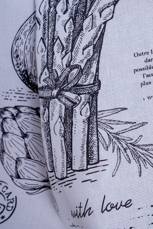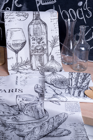 Стильный набор из трех кухонных полотенец размером 60*48 из рогожки. Полотенца белого цвета с черными надписями и черно-белыми рисунками.