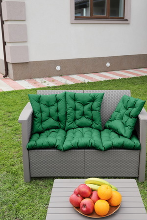 Подушка для садовой мебели 44х44 см с завязками с 2 углов. Материал чехла - особо прочная водоотталкивающая ткань оксфорд (100% полиэстер), надолго сохраняющая форму. В качестве наполнителя использовано полиэфирное волокно с хорошей воздухопроницаемостью. Подушки надежно крепятся с помощью завязок. Данные подушки можно комбинировать с матрасом 50*150 см, так же представленным в нашем ассортименте. Использованы реальные фото.