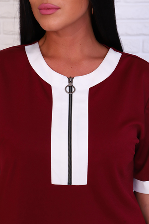 Платье удлиненное прямого кроя. Округлая горловина, планка на молнии. Короткий рукав на манжете. По бокам потайные карманы. По бокам изделия разрезы. Платье гармонично смотрится как с легкими туфельками, так и с удобными кроссовками.
