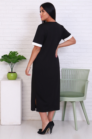 Платье удлиненное прямого кроя. Округлая горловина, планка на молнии. Короткий рукав на манжете. По бокам потайные карманы. По бокам изделия разрезы. Платье гармонично смотрится как с легкими туфельками, так и с удобными кроссовками.
