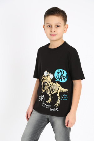 Свободная однотонная футболка. Модель выполнена из хлопкового трикотажа "кулирка". Круглый вырез горловины, короткий рукав со спущенной линией плеча. На полочке яркий принт.