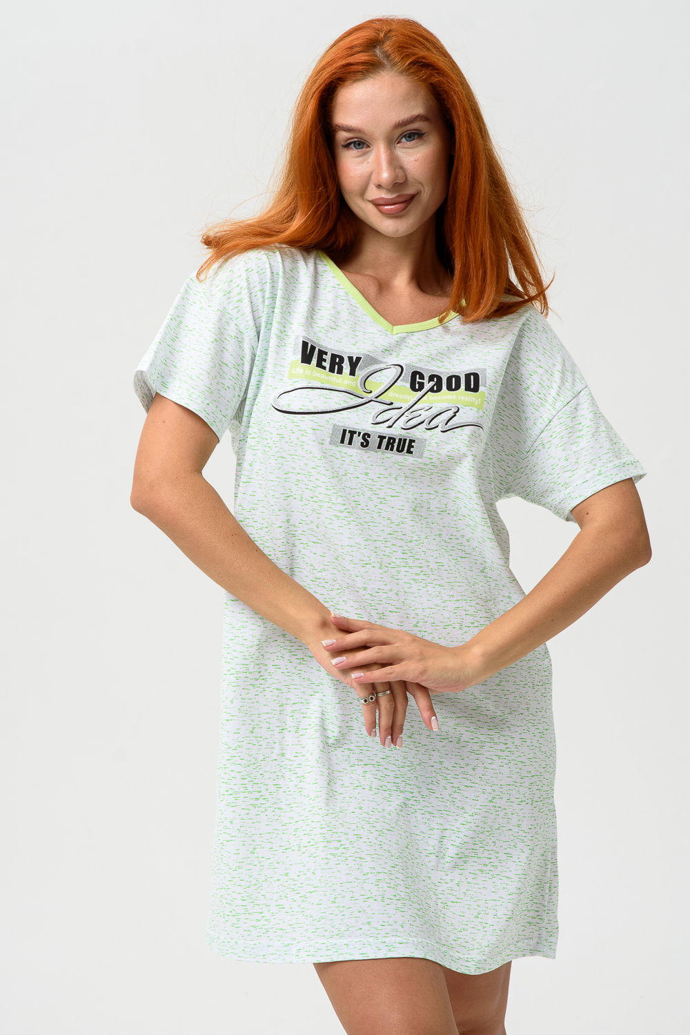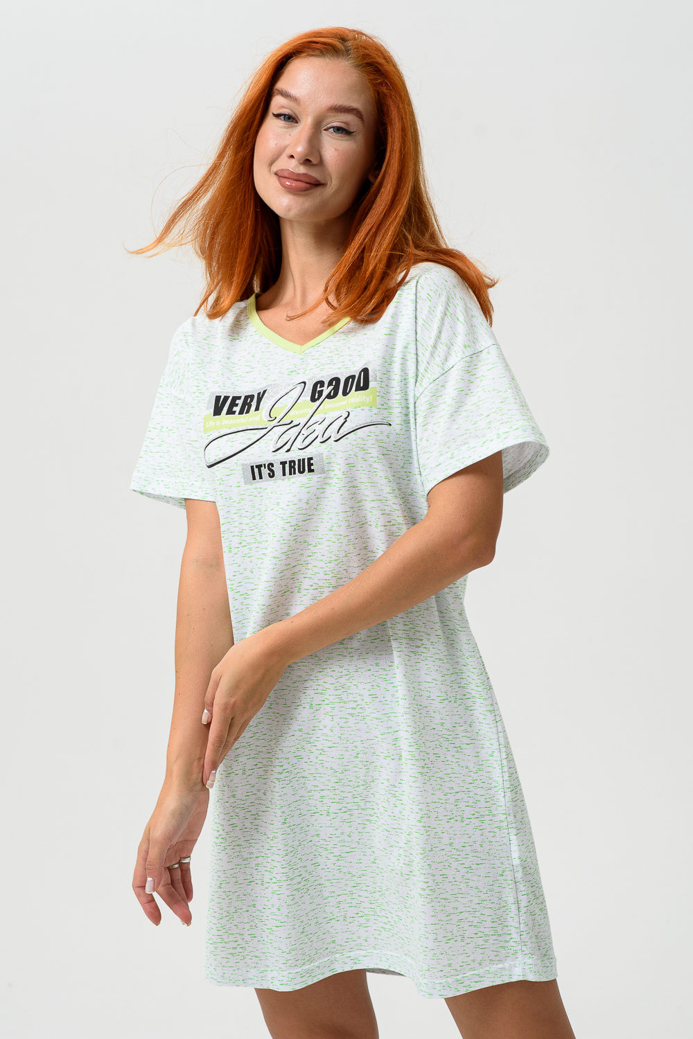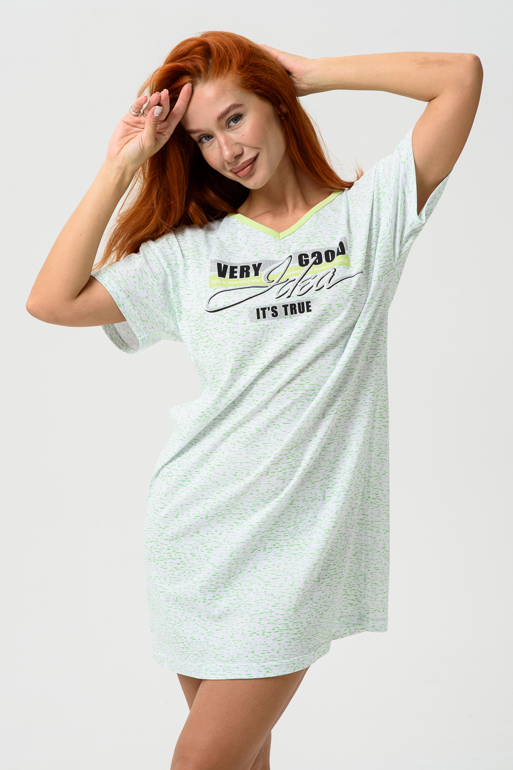 Молодёжная туника в виде удлинённой свободной футболки с современным принтом. Можно использовать в качестве ночной сорочки.