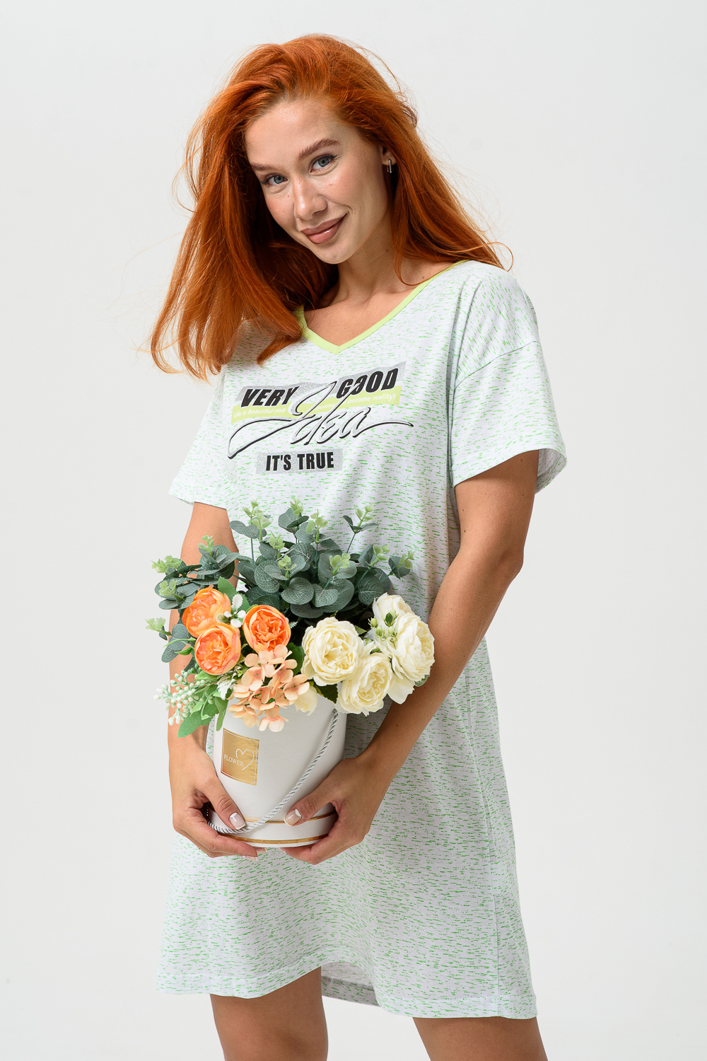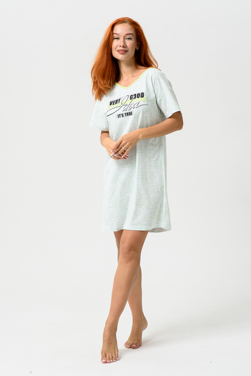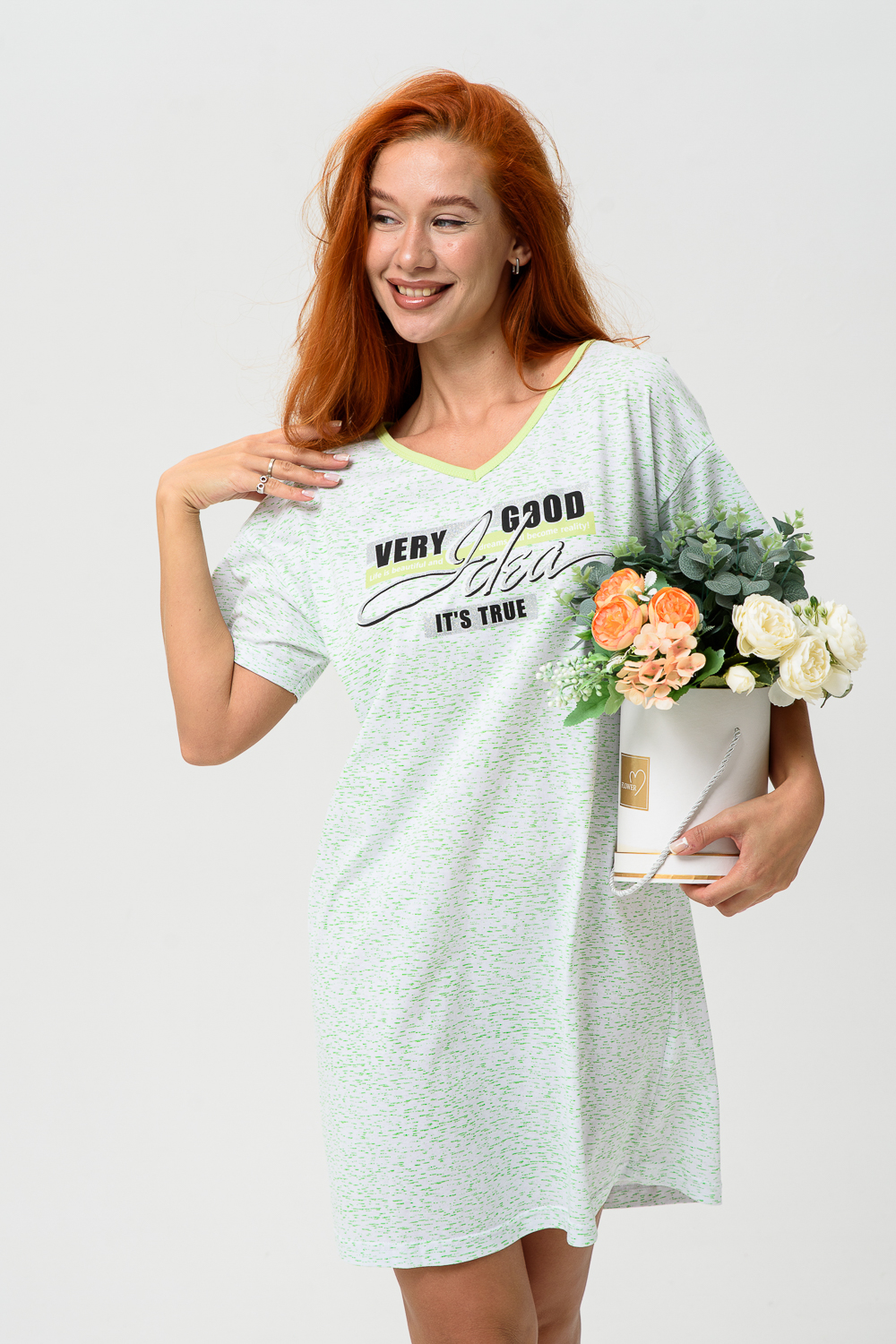 Молодёжная туника в виде удлинённой свободной футболки с современным принтом. Можно использовать в качестве ночной сорочки.