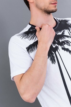 Хлопковая мужская футболка с коротким рукавом. Данная модель выполнена из трикотажного полотна кулирка (хлопок 100%). Горловина обработана кантом, с усиливающей строчкой. На полочке присутствует принт. Отлично подойдет для  повседневной носки и отпуска.