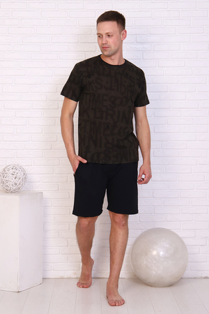 Костюм мужской комбинированный: футболка из кулирки, шорты из двухнитки. Футболка приятная к телу, хорошо пропускает воздух, не скатывается и не дает усадку. Шорты с карманами по бокам хорошо держат форму. Костюм сшит аккуратно, ткань турецкого качества - стиль и простота.