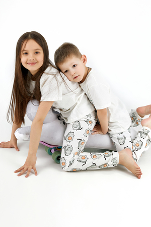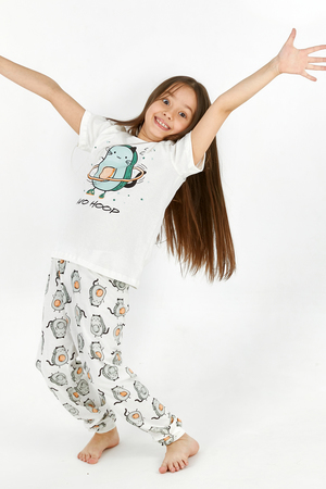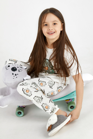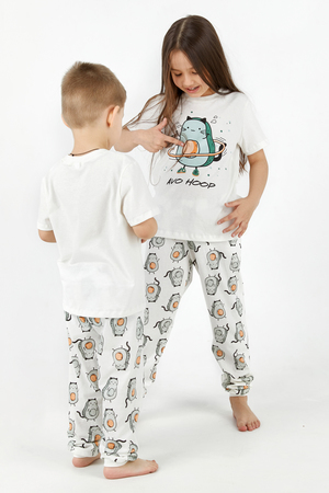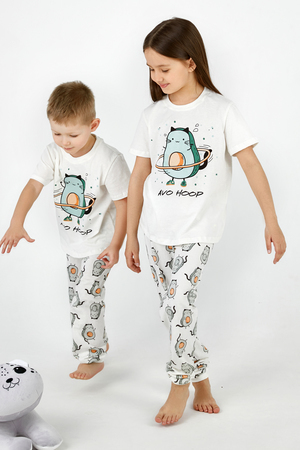 Детская пижама с модным принтом в приятных тонах для мальчиков и девочек.