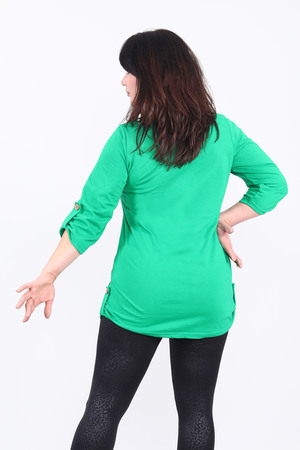 Туника женская с рукавом 3/4. Данная модель выполнена из трикотажного полотна кулирка (хлопок 100%). Горловина обработана обтачкой. Низ изделия округлый. По бокам изделия и внизу на рукавах присутствуют хлястики с пуговками. Отличная модель для отдыха и прогулок.