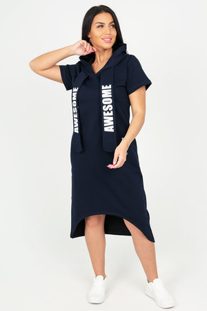 Молодежное женское платье из футера 2х-нитки с лайкрой полуприлегающего кроя. Платье с капюшоном, на декоративных элементах кроя - печать. Летнее платье с короткими рукавами и разноуровневым подолом прекрасно подойдёт для прогулок, отдыха на природе, на даче. Благодаря свободному крою подойдёт для будущих мам.