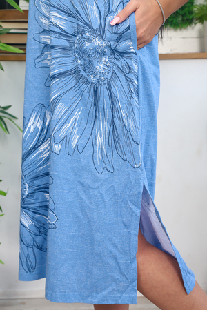 Платье прямого силуэта, с V-образной горловиной спереди и сзади, с карманами, с разрезами в нижней части боковых швов. Рукав короткий, с отложным манжетом и хлястом с пуговицей. Вход в карман обработан бейкой из основного полотна.
