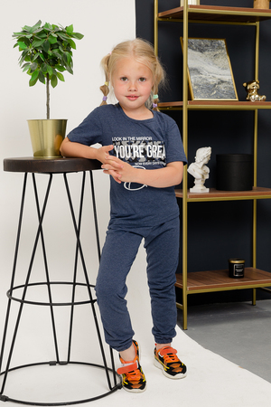 Костюм детский футболка и брюки. Футболка с короткими рукавами. Брюки на резинке внизу.