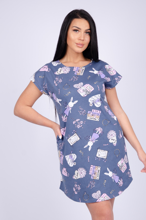 Туника женская домашняя летняя из 100 % хлопка. Домашнее платье с карманами с цельнокроеным рукавом и полукруглым низом туники.