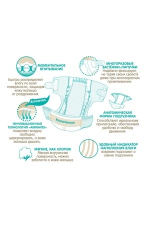 Индикатор наполнения (меняет цвет) вовремя подскажет о смене подгузника