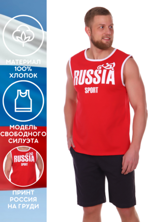Майка мужская из 100% хлопка, с оригинальным принтом, надписью на груди - Россия. Стильно, строго по-мужски. Данная модель отлично подойдет сильным и харизматичным мужчинам. Хороший выбор на жаркую погоду. Оригинальный подарок брату, папе, деду, сыну, любимому мужчине.