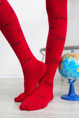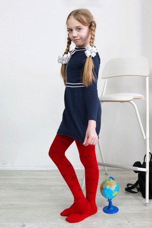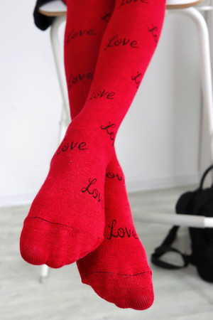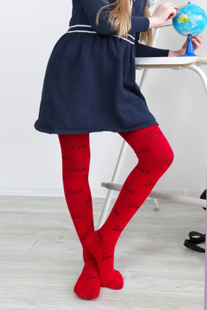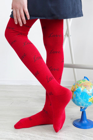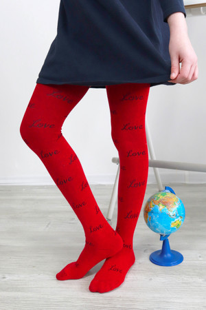 Детские колготки для девочек. По всей поверхности колготок надписи LOVE