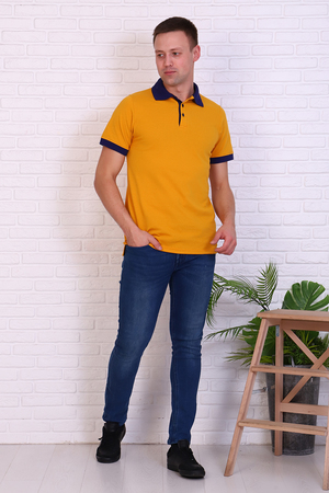 Футболка поло мужская из ткани лакост пенье 100% хлопок. Вязаные воротник и манжеты, планка на 3 пуговицы контрастного синего цвета, по бокам разрезы. Футболка удобная и комфортная, подойдет для повседневной носки, прогулок и отдыха, после стирки сохраняет цвет и форму.