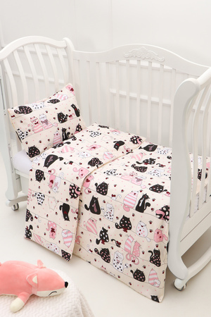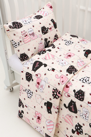 Модель: КПБ с простыней на резинке арт. КПБ-ПР/котики на бежевом