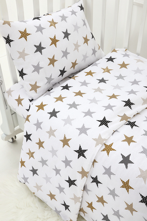Комплект постельного белья с простыней на резинке на прямоугольный матрас размером 120х60см в детскую кроватку, из яркой современной расцветки. Бязь 100% хлопок. Размер пододеяльника 110х148см, наволочка 40х60см. Ткань абсолютно гипоалергенна. Материал высокого качества сохраняет форму и легко стирается. Хлопок обеспечивает отличную терморегуляцию и воздухообмен, чтобы малыш не потел. Ваш ребёнок всегда будет чувствовать себя комфортно и уютно.