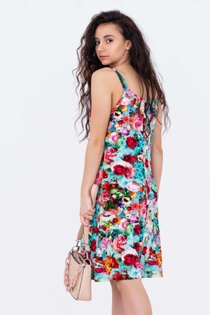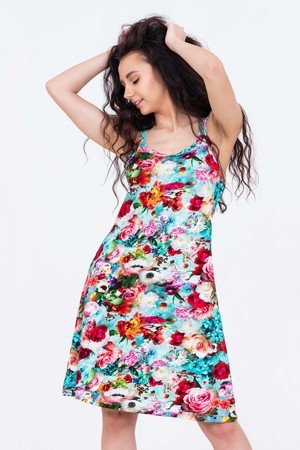 Лёгкий сарафан на бретелях из качественной ткани - вискозы диджитал. Полотно мягкое и приятное на ощупь. Ткань прохладная летом. Внешне очень яркая и привлекательная. Включение нитей лайкры придаёт ей эластичность, а сочетание с хлопком повышает прочность.