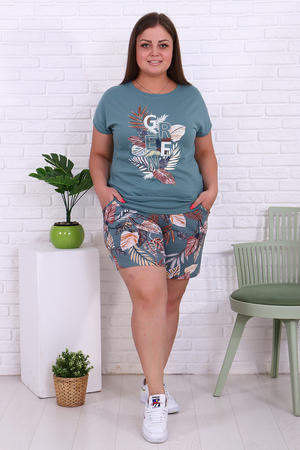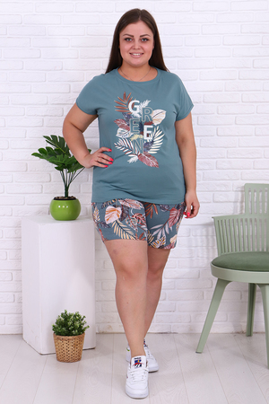 Костюм состоит из шорт и футболки со спущенным рукавом. Пижама полуприлегающего силуэта, выполнена из 100% хлопка. Костюм прекрасно подойдет как домашняя одежда.