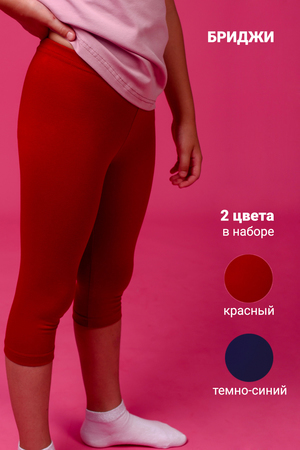 Бриджи для девочек комплект из 2 шт. - изготовлены из хлопка с добавлением лайкры. Трикотажные бриджи не скатываются и не выцветают, хорошо тянутся. Удобный пояс с мягкой резинкой. Бриджи не сползают, хорошо облегают фигуру и не давят на живот. Бриджи для девочек сохраняют тепло и дышат, подходят для лета и поздней весны, для прогулок, для школы, для детского сада и для дома. Для малышей они очень удобная домашняя одежда. Благодаря эластичной ткани прекрасно подойдут как форма для физкультуры и спортивные бриджи на танцы. Идеальный подарок для девочки на праздник, на новый год, на день рождения или на 8 марта. Материал 95% хлопок, 5% лайкра.