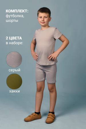 Костюм для мальчика выполнен из экологичной хлопковой ткани-кулирное полотно. Набор из 2 комплектов. Футболка прямого кроя. Вырез горловины округлый, рукав втачной, короткий. Шорты короткие, без карманов, пояс на резинке. Ткань легкая, приятная к телу, хорошо пропускает воздух. Натуральный хлопок обеспечит комфорт ребенку во время летних прогулок или носки дома, в детском саду.