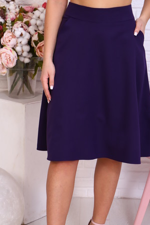 Женская юбка длины миди с карманами, покрой полусолнце, застежка потайная молния в боковом шве. Юбку можно носить с туфлями на каблуке, балетками или кедами. Сочетается с топом, блузкой, майкой, свитером, водолазкой. Идеально подойдет для работы в офисе, деловой встречи, прогулки или праздничного мероприятия.