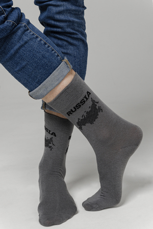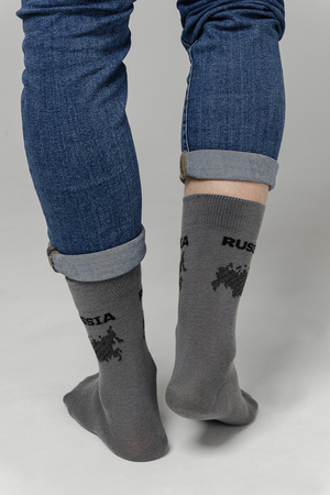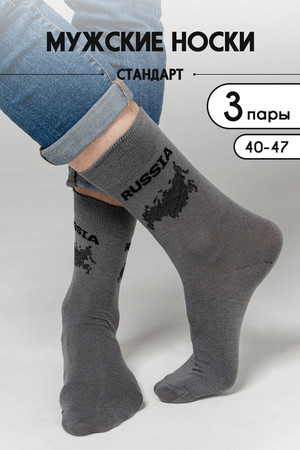 Оригинальный и стильный набор мужских носков Держава с патриотичной тематикой - с надписью и картой России. Комплект 3 пары.