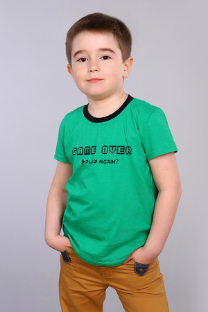 Футболка детская с коротким рукавом. Данная модель выполнена из трикотажного полотна кулирка (хлопок 100%). На полочке присутствует принт. Горловина выполнена из эластичного трикотажного полотна рибана. Модная, стильная модель порадует вас и вашего малыша.