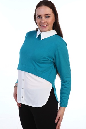 Модная блузка из вискозы и масла. Белый отложный воротничок, белая вставка спереди, длинные рукава. Несколько вариантов расцветки. Размеры от 42 до 56.