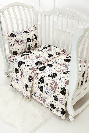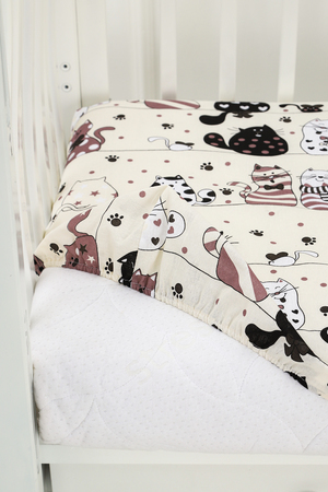 Модель: КПБ с простыней на резинке КПБ-ПР/котик-шоколадный