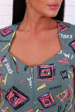 Халат женский на молнии из натурального хлопка, приятный к телу, комфортный. Модель с рельефами, слегка приталенного силуэта, фигурный вырез горловины обработан обтачкой на флизелине, короткий рукав, удобные карманы. Халат - это удобная вещь в женском домашнем гардеробе.