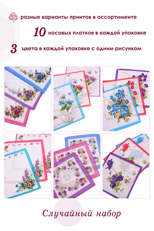 Набор носовых платков, 10 штук в упаковке.