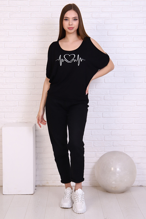 Футболка с молодёжным принтом из приятной к телу вискозы. Модель "летучая мышь" в стиле ОВЕРСАЙЗ, с глубоким декольте, большими разрезами по рукаву, что придаёт изделию некую изюминку и привлекательность. Низ футболки обработан широким манжнтом. Отличный вариант для летнего гардероба.