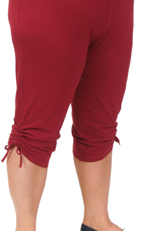 Женские бриджи на резинке, по низу штанин выполнена кулиска, которая стягивает штанину на шнурок.